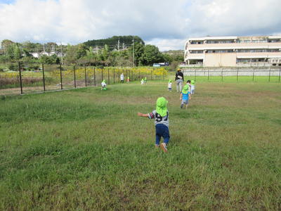 かけっこでは、にじチームから始め、そら・くじらチームへと年齢が上がるたびに少しずつ距離を伸ばしてゴール目指してがんばりました。