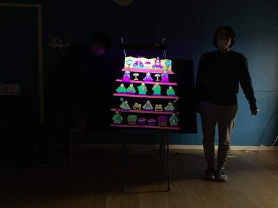 歌に合わせてブラックシアターも見せてもらい「きれい」と言いながら楽しむ子もいました。